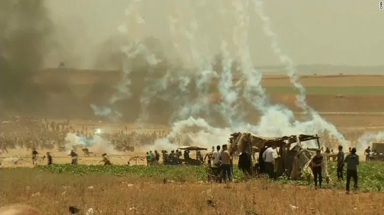 [van id=”world/2018/05/14/jerusalem-protest-teargas-lee.cnn”] CNN’s Ian Lee reports live from the demonstrations by dozens of protesters in response to the US embassy relocating to J...