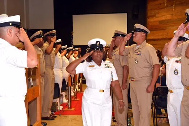 By Nick Gale, WLS-AM 890 News (SAN ANTONIO) - Senior Chief Navy Counselor Ginger Stevenson of Chicago, assigned to Navy Recruiting District San Antonio, was piped ashore by her fellow chief petty offi...